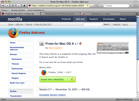 Well, if you wanna check out the proposed Mac OS X Firefox 3 UI for yourself, grab yourself a copy of Firefox 3 Beta 1 and go get the Proto theme.