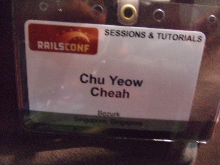 Patience in the queue rewarded me with a RailsConf badge/name tag:
